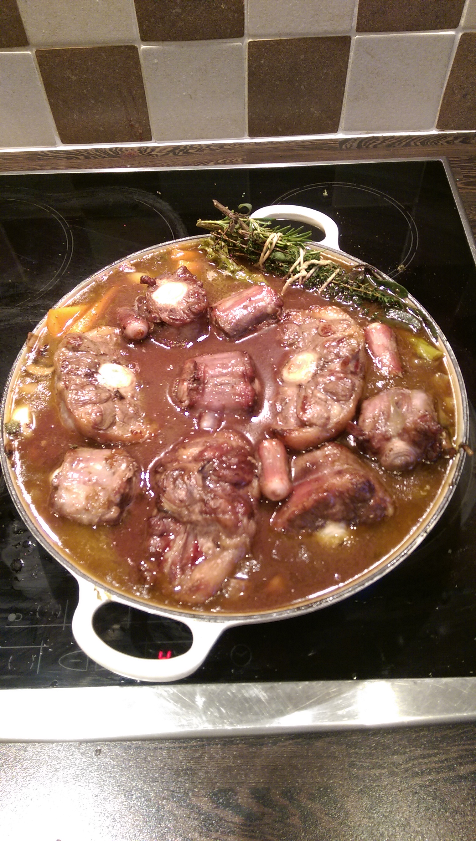 I used a meat thermometer to make sure that the temperature was reached in the middle of the joint. This picture was 2.5 hours in and the meat temperature was 60C. Then after 6 hours cooking, remove from the oven and rest for 1 hour – keep warm with foil. After an hour, turn the oven up to HOT!! Finish the joint at “HOT” for half an hour. This is what it should look like…
